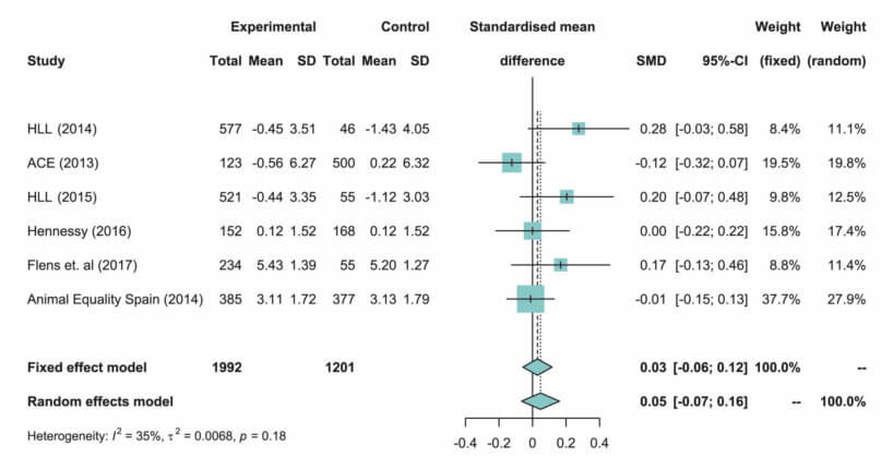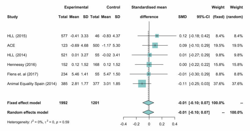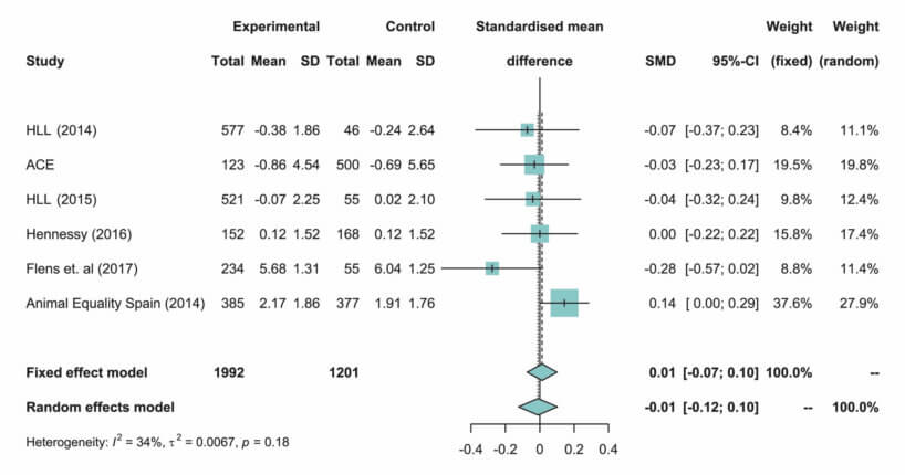 - A meta-analysis and in-depth discussion of the limitations of those key animal advocacy studies